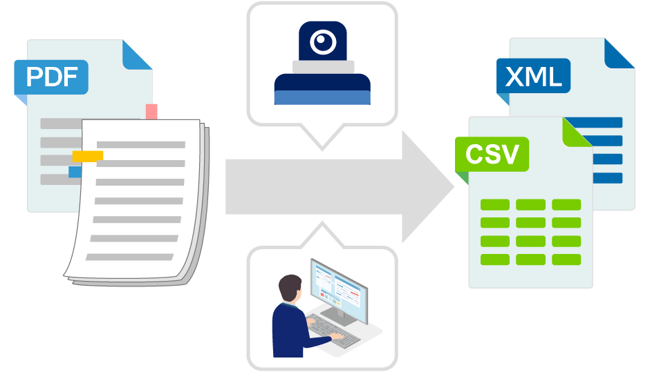 AI-OCRを使ってデータを読み取ります。AI-OCRで読み取りづらい箇所は専門スタッフが手作業で補正。効率的かつ、精度の高いプロの仕上げ。